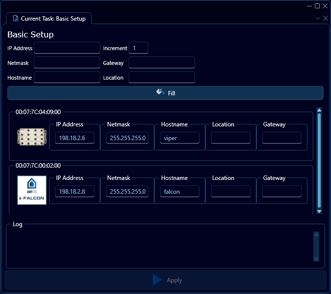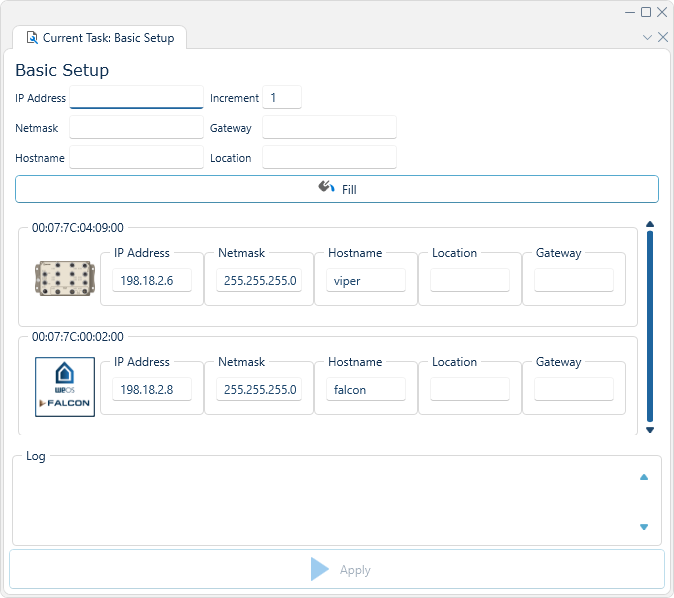 The fill pane allows the user to write properties once and then copy them to all devices. The increment box will operate on the IP Address field and increase the IP address handed to each device by the amount specified.