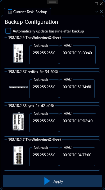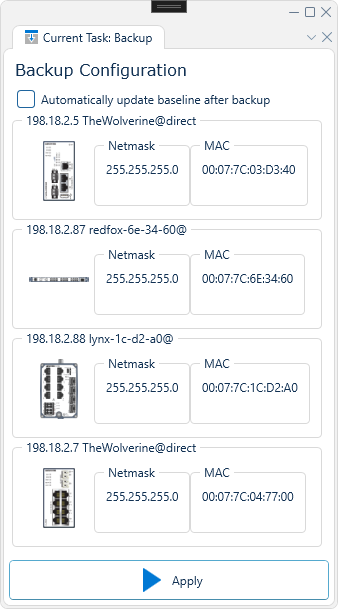 When selecting Automatically update baseline after backup at the top, then the following backup will be used as new baseline for the devices.